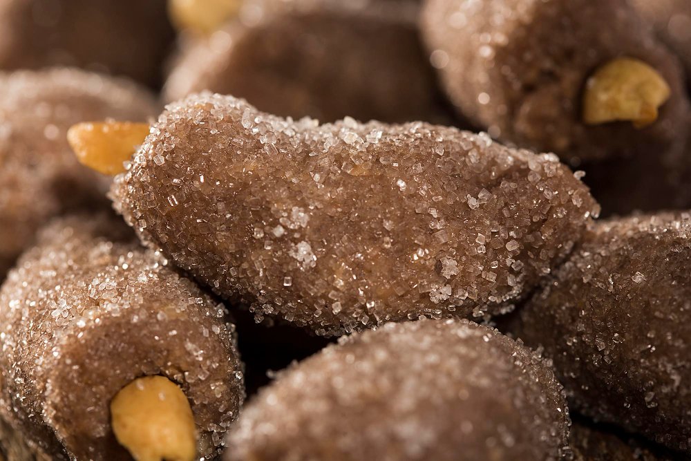 Docinho em formato de caju feito com amendoim, leite condensado e chocolate.